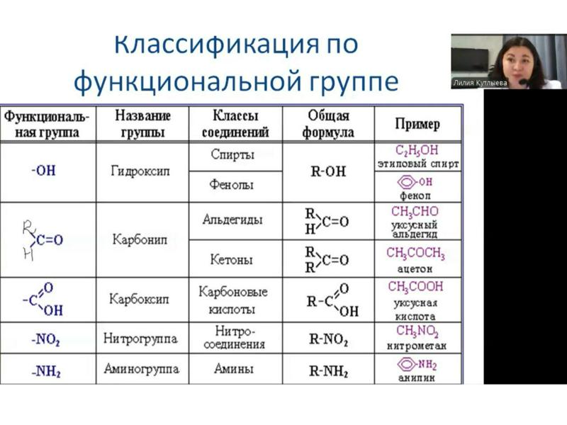 На вебинаре обсуждались классификация органических веществ по строению углеродного скелета (ациклические, циклические, предельные, непредельные) и функциональным группам (спирты, альдегиды и т.д.), а также основы их номенклатуры. Особое внимание было уделено заданиям №10 ЕГЭ по химии, которое традиционно направлено на проверку знаний по указанной тематике.